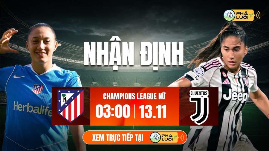 Soi kèo Nữ Atletico Madrid vs Nữ Juventus hôm nay ở Cúp C1 Nữ ngày 13/11/2025. Nữ Atletico Madrid sẽ mang đến những thử thách mà Nữ Juventus khó lòng vượt qua.
