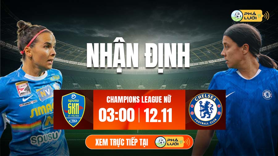 Soi kèo Nữ St. Polten vs Nữ Chelsea hôm nay ở Cúp C1 Nữ ngày 12/11/2025. Nữ Chelsea vượt trội hơn rất nhiều so với Nữ St. Polten, nên một chiến thắng đậm không khó với các vị khách.