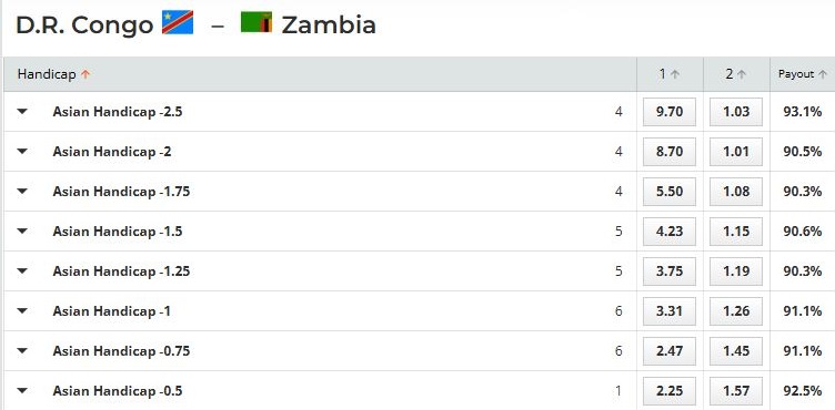 Biến động tỷ lệ kèo CH Congo vs Zambia