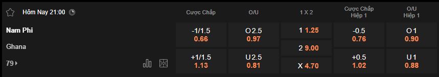 Biến động tỷ lệ kèo Nam Phi vs Ghana