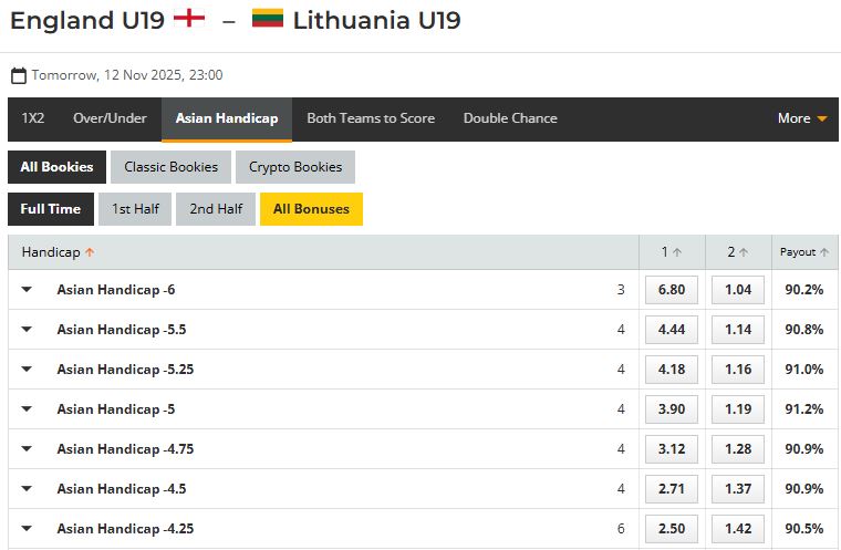 Trước trận đấu U19 Anh vs U19 Lithuania