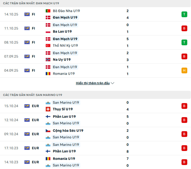 Phân tích sâu hơn: Có tới 43% số bàn thắng có sự xuất hiện của U19 Đan Mạch được thực hiện sau phút 75 của trận đấu. Trong khi đó, 44% số bàn thắng của U19 San Marino được tạo ra ở nửa sau hiệp đấu thứ 2. Với những con số thống kê này, trận đấu giữa 2 đội trong ngày hôm nay nhiều khả năng sẽ xuất hiện bàn thắng sau phút 75.